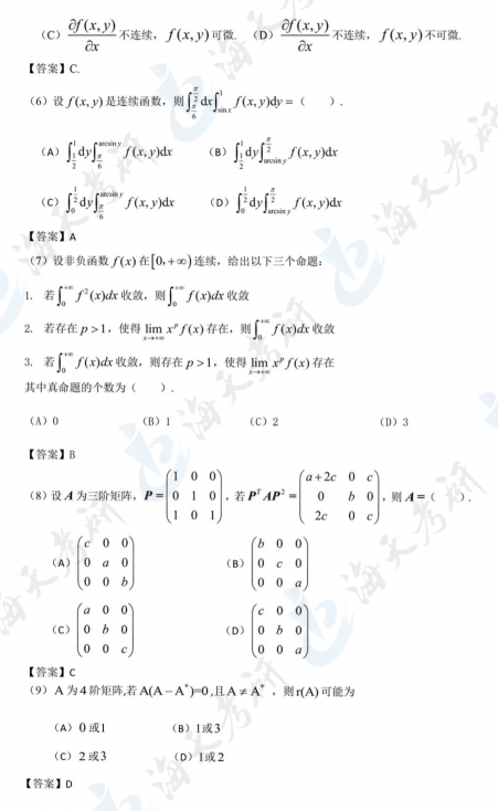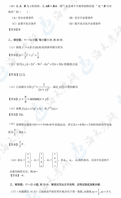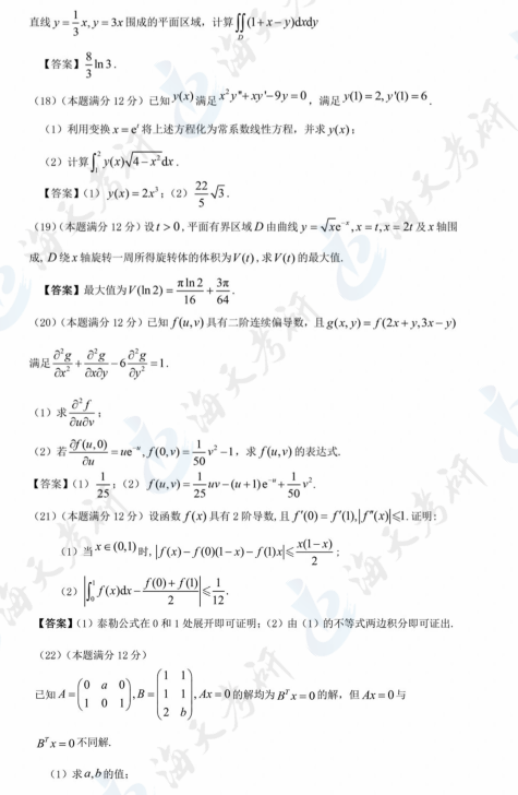 以上就是海天考研网为各位考生整理的2024考研数学二真题及解析汇总,持续为考研学子更新其他考研科目考研真题及答案解析,各位考生可以根据自身需要关注收藏,及时查看完整版2024考研真题及答案解析。